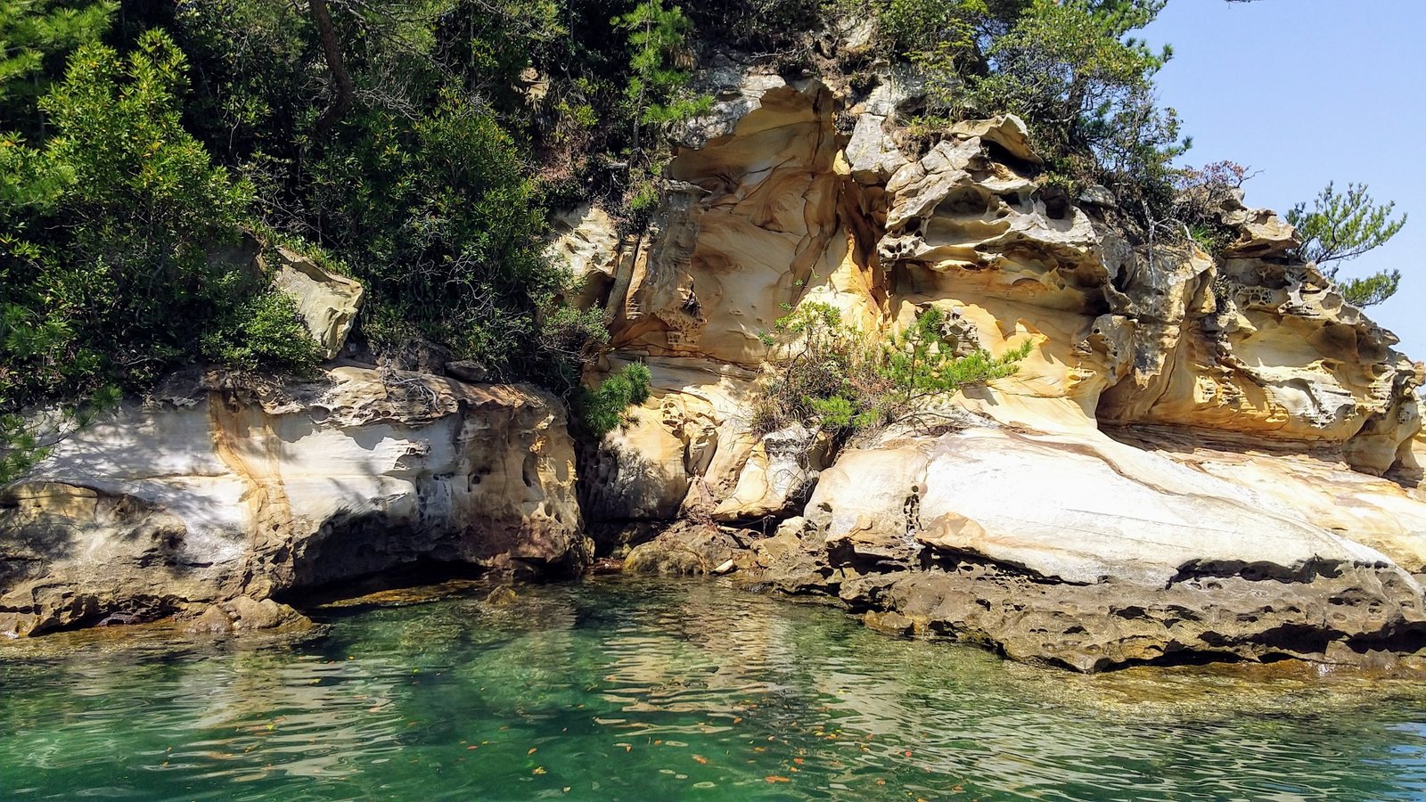 The boat weaves through the maze of islands, passing fishing boats, quiet coves, and untouched beaches.